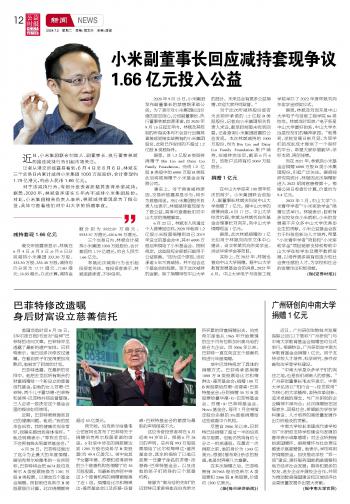 小米副董事長(zhǎng)回應(yīng)減持套現(xiàn)爭(zhēng)議1.66億元投入公益