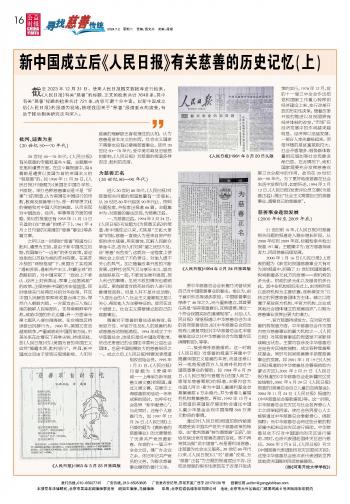 新中國成立后《人民日報(bào)》有關(guān)慈善的歷史記憶(上)