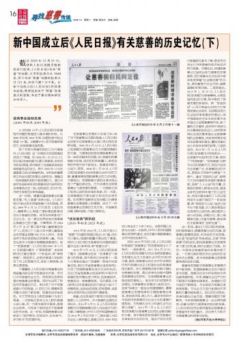 新中國(guó)成立后《人民日?qǐng)?bào)》有關(guān)慈善的歷史記憶(下)