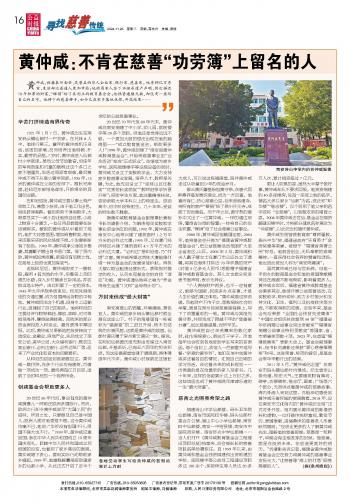 黃仲咸:不肯在慈善“功勞簿”上留名的人