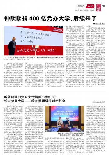 歐普照明向復(fù)旦大學(xué)捐贈3000萬元設(shè)立復(fù)旦大學(xué)——歐普照明科技創(chuàng)新基金