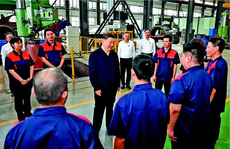 中共中央總書記、國家主席、中央軍委主席習(xí)近平近日在山西考察時強(qiáng)調(diào),山西要認(rèn)真落實(shí)黨中央關(guān)于促進(jìn)中部地區(qū)加快崛起、推動黃河流域生態(tài)保護(hù)和高質(zhì)量發(fā)展等戰(zhàn)略部署,堅(jiān)持穩(wěn)中求進(jìn)工作總基調(diào),完整準(zhǔn)確全面貫徹新發(fā)展理念,統(tǒng)籌好發(fā)展和安全,努力在推動資源型經(jīng)濟(jì)轉(zhuǎn)型發(fā)展上邁出新步伐,奮力譜寫三晉大地推進(jìn)中國式現(xiàn)代化新篇章。 7月7日至8日,習(xí)近平在山西省委書記唐登杰和省長盧東亮陪同下,先后到陽泉、太原考察調(diào)研。 百團(tuán)大戰(zhàn)是抗日戰(zhàn)爭中的重大戰(zhàn)役,極大振奮了全國軍民抗戰(zhàn)到底的信心。7日下午,習(xí)近平來到位于陽泉市獅腦山的百團(tuán)大戰(zhàn)紀(jì)念碑廣場,向八路軍烈士敬獻(xiàn)花籃。接著,他參觀了百團(tuán)大戰(zhàn)紀(jì)念館展陳。一張張歷史照片、一件件珍貴實(shí)物,生動展現(xiàn)了中國共產(chǎn)黨領(lǐng)導(dǎo)抗日軍民同仇敵愾、勇御外侮的光輝歷史,習(xí)近平不時駐足察看和沉思。他強(qiáng)調(diào),百團(tuán)大戰(zhàn)的歷史壯舉,充分展現(xiàn)了我們黨在全民族抗戰(zhàn)中的中流砥柱作用,充分展現(xiàn)了黨領(lǐng)導(dǎo)的人民戰(zhàn)爭的磅礴力量。要講好抗戰(zhàn)故事,把偉大抗戰(zhàn)精神一代代傳下去。 在紀(jì)念館大廳,習(xí)近平同前來參觀的青少年學(xué)生和紀(jì)念館工作人員親切交流。他說,88年前的今天發(fā)生的“七七事變”,是中華民族全面抗擊日本侵略者的起點(diǎn),前事不忘、后事之師,到這里來就是接受精神洗禮。廣大青少年生逢其時,要賡續(xù)紅色血脈,樹立強(qiáng)國有我的遠(yuǎn)大志向,做堂堂正正、光榮自豪的中國人,勇?lián)褡鍙?fù)興的時代大任。 當(dāng)天下午,習(xí)近平到陽泉閥門股份有限公司進(jìn)行了考察。在聽取近年來山西省產(chǎn)業(yè)轉(zhuǎn)型升級情況匯報(bào)后,他走進(jìn)企業(yè)生產(chǎn)車間,詳細(xì)了解煤氣閘閥、電動翻板閥等產(chǎn)品生產(chǎn)和銷售情況。他指出,傳統(tǒng)制造業(yè)是實(shí)體經(jīng)濟(jì)的重要組成部分,要把握市場需求,加強(qiáng)科技創(chuàng)新,讓傳統(tǒng)產(chǎn)業(yè)煥發(fā)新活力。他對企業(yè)員工們說,我國的工業(yè)發(fā)展,過去是靠一榔頭一錘子地敲,今天要靠先進(jìn)技術(shù)和裝備來提升水平。實(shí)業(yè)興國,實(shí)干興邦。希望你們再接再厲、更上層樓,為建設(shè)制造強(qiáng)國多作貢獻(xiàn)。 8日上午,習(xí)近平聽取山西省委和省政府工作匯報(bào),對山西各方面取得的成績給予肯定,對下一步工作提出要求。 習(xí)近平指出,建設(shè)國家資源型經(jīng)濟(jì)轉(zhuǎn)型綜合配套改革試驗(yàn)區(qū)是黨中央交給山西的一項(xiàng)戰(zhàn)略任務(wù),要進(jìn)一步統(tǒng)一思想,保持定力,堅(jiān)定有序推進(jìn)轉(zhuǎn)型發(fā)展。重點(diǎn)要抓好能源轉(zhuǎn)型、產(chǎn)業(yè)升級和適度多元發(fā)展。要在扛牢國家電煤保供責(zé)任前提下,推動煤炭產(chǎn)業(yè)由低端向高端、煤炭產(chǎn)品由初級燃料向高價值產(chǎn)品攀升,同時著眼于高水平打造我國重要能源原材料基地,配套發(fā)展風(fēng)電、光伏發(fā)電、氫能等能源,構(gòu)建新型能源體系。要扎實(shí)推進(jìn)傳統(tǒng)產(chǎn)業(yè)轉(zhuǎn)型升級,圍繞發(fā)展新質(zhì)生產(chǎn)力因地制宜布局新興產(chǎn)業(yè)和未來產(chǎn)業(yè),逐步形成體現(xiàn)山西特點(diǎn)、具有比較優(yōu)勢的現(xiàn)代化產(chǎn)業(yè)體系。要用好多元發(fā)展條件,優(yōu)化營商環(huán)境,激發(fā)經(jīng)營主體活力,把資源優(yōu)勢更好轉(zhuǎn)化為發(fā)展優(yōu)勢。 習(xí)近平強(qiáng)調(diào),轉(zhuǎn)型發(fā)展必須牢牢守住安全穩(wěn)定底線。要著力穩(wěn)就業(yè)、穩(wěn)企業(yè)、穩(wěn)市場、穩(wěn)預(yù)期,強(qiáng)化“一老一小”等重點(diǎn)民生保障服務(wù),兜牢困難群眾基本生活。要深化黨建引領(lǐng)基層治理,強(qiáng)化社會治安整體防控,常態(tài)化開展掃黑除惡,依法打擊各類違法犯罪活動,確保社會大局穩(wěn)定。要一體推進(jìn)治山治水治氣治城,全面加強(qiáng)防沙治沙和流域水土流失治理,持續(xù)推進(jìn)重點(diǎn)行業(yè)節(jié)能降碳,扎實(shí)開展礦山生態(tài)修復(fù),切實(shí)維護(hù)生態(tài)安全。要強(qiáng)化安全生產(chǎn),嚴(yán)格落實(shí)各項(xiàng)監(jiān)管制度,堅(jiān)決防范和遏制重特大事故發(fā)生。目前已進(jìn)入主汛期,要精心做好防汛抗洪預(yù)案和防災(zāi)減災(zāi)救災(zāi)準(zhǔn)備工作。 習(xí)近平指出,必須以永遠(yuǎn)在路上的堅(jiān)韌和執(zhí)著推進(jìn)全面從嚴(yán)治黨。要發(fā)揚(yáng)自我革命精神,落實(shí)管黨治黨責(zé)任,堅(jiān)持黨性黨風(fēng)黨紀(jì)一起抓、正風(fēng)肅紀(jì)反腐相貫通,把嚴(yán)的基調(diào)、嚴(yán)的措施、嚴(yán)的氛圍長期堅(jiān)持下去,努力營造風(fēng)清氣正的政治生態(tài)。要抓緊抓細(xì)深入貫徹中央八項(xiàng)規(guī)定精神學(xué)習(xí)教育后續(xù)工作,查擺問題要真,整改措施要實(shí),確保取得實(shí)效。要及時總結(jié)學(xu