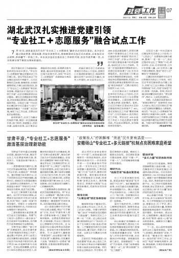 湖北武漢扎實推進(jìn)黨建引領(lǐng)“專業(yè)社工 志愿服務(wù)”融合試點工作