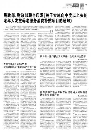 民政部、財政部聯(lián)合印發(fā)《關(guān)于實施向中度以上失能老年人發(fā)放養(yǎng)老服務(wù)消費補貼項目的通知》