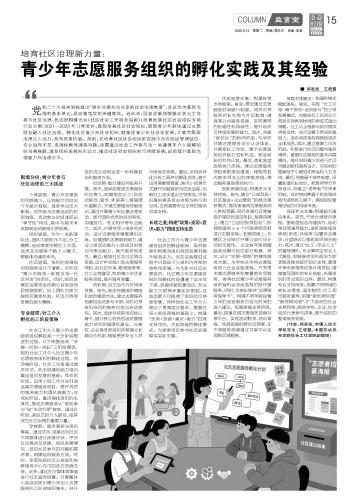 培育社區(qū)治理新力量:青少年志愿服務(wù)組織的孵化實(shí)踐及其經(jīng)驗(yàn)
