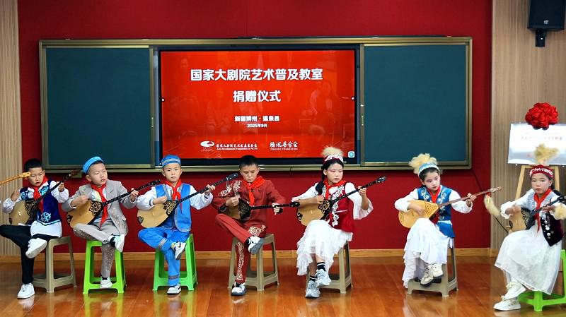 國家大劇院藝術(shù)普及教室,采用“線下空間改造+線上資源賦能”的立體幫扶模式,以“小空間”激活“大文化”,既是首都連接邊遠(yuǎn)地區(qū)的“美育橋梁”,也是國家大劇院在邊遠(yuǎn)地區(qū)的“美育陣地”。 ■ 本報(bào)記者 高文興 在祖國邊陲,新疆的西北端,坐落著這樣一個(gè)與哈薩克斯坦共和國接壤的小城——博爾塔拉蒙古自治州溫泉縣。這片僅有7萬多人口的靜謐之地,其三面被高聳入云的連綿雪山所包圍,像是被巨人藏入懷抱的一顆稀世之珍,驚艷動(dòng)人,卻隱秘地不為外界察覺。 9月中旬的晚上,溫泉縣已倍感寒意,至21時(shí),漫長的白日卻才舍得向這里做最后告別。然而,一片雷鳴般的掌聲和歡呼又陡然劃破這天山腳下的寧靜,一場國家級頂尖水準(zhǔn)的歌舞盛宴此時(shí)拉開帷幕——在新疆維吾爾自治區(qū)成立70周年之際,國家大劇院藝術(shù)發(fā)展基金會(huì)為溫泉縣帶來的藝術(shù)火種,正烘托著這顆邊陲明珠釋放其更加璀璨的光芒。 “藝術(shù)普及教室”落地溫泉 助力多民族文化永葆活力 溫泉縣城位于海拔1700米的博格達(dá)爾山的山腳下,博格達(dá)爾在蒙語中意為“神山的背后”。雖然地處遙遠(yuǎn),但千年來,在這座神山的注視下,漢族、蒙古族、哈薩克族、維吾爾族等多民族共同譜寫出了一曲曲世代傳唱的動(dòng)人歌謠,當(dāng)?shù)氐拿晒抛宥陶{(diào)更從大山背后傳出,成為了國家級的“非遺”代表性項(xiàng)目。 9月17日,國家大劇院藝術(shù)發(fā)展基金會(huì)攜國家大劇院歌唱家遠(yuǎn)赴溫泉縣,與溫泉縣烏蘭牧騎展開交流,為草原輕騎兵捐贈(zèng)樂器,并與他們聯(lián)手為當(dāng)?shù)匕傩辗瞰I(xiàn)了兩臺(tái)高水準(zhǔn)的演出,將最優(yōu)質(zhì)的文化資源送抵祖國的邊境線。 于是,便有了文章開頭的一幕——千余名當(dāng)?shù)匕傩赵谝归g涌進(jìn)溫泉縣文化中心劇場,他們的熱情激發(fā)出了演員們的高水準(zhǔn)表演,將晚會(huì)推向一個(gè)又一個(gè)高潮。 巴音巴特已經(jīng)是溫泉縣烏蘭牧騎第五任隊(duì)長,當(dāng)天,他全程參與了和大劇院歌唱家的交流以及同臺(tái)演出,他在演出后接受《公益時(shí)報(bào)》記者采訪時(shí)表示,在過去,烏蘭牧騎的創(chuàng)作和演出條件艱苦,經(jīng)?!耙蕴鞛槟徊?,以地為舞臺(tái)”,這次國家大劇院帶來的樂器有鋼琴、二胡、三弦等,“豐富了我們的樂器品種,讓演員的創(chuàng)作、表演和舞蹈編曲更上一個(gè)臺(tái)階。國家大劇院藝術(shù)家與基層藝術(shù)團(tuán)隊(duì)的深入交流,也讓我們受益匪淺,他們千里迢迢的到來讓我們深切感受到了來自祖國的溫暖?!?br> 溫泉縣烏蘭牧騎生生不息的傳承基因,必然與當(dāng)?shù)孛耖g世代熏陶和培養(yǎng)密不可分,而小學(xué)基礎(chǔ)教育則是將藝術(shù)種子進(jìn)行集中播撒的關(guān)鍵階段。鑒于此,國家大劇院團(tuán)隊(duì)本次新疆溫泉之行的“重頭戲”,則是為溫泉縣城鎮(zhèn)小學(xué)精心打造一間“藝術(shù)普及教室”。 據(jù)了解,溫泉縣城鎮(zhèn)小學(xué)是當(dāng)?shù)匾蛔兄凭脷v史和美育教育傳統(tǒng)的學(xué)校,目前在校學(xué)生1052名,其中90%為少數(shù)民族。校長王麗娜表示,學(xué)校配備了6間音樂教室和4名音樂教師,基本滿足教學(xué)需求,但面對孩子們更高的藝術(shù)渴求,在樂器等基礎(chǔ)設(shè)備上還難以滿足。 而新落成的“藝術(shù)普及教室”中,教學(xué)一體機(jī)、音響、鋼琴、合唱臺(tái)等先進(jìn)硬件設(shè)施一應(yīng)俱全,師生們還可以通過線上課堂來獲取更多的教材和音視頻。9月18日上午,在“藝術(shù)普及教室”捐贈(zèng)儀式過后,城鎮(zhèn)小學(xué)的學(xué)生們表演了蒙古舞蹈《吉祥的筷子》、蒙古短調(diào)《察哈爾八旗》、維吾爾族舞蹈《快樂的童年》、冬不拉合奏《我的伙伴》、鋼琴演奏《噴泉》等精彩節(jié)目,展現(xiàn)了多民族文化的交融與活力。 此次隨隊(duì)前來的國家大劇院藝術(shù)家金鄭建、胡越,在驚嘆于小小年紀(jì)的孩子們有如此藝術(shù)天賦之余,分別為學(xué)校的社團(tuán)學(xué)生指導(dǎo)演唱《祖國在我心窩里》《盧溝謠》,并為他們上了一場生動(dòng)的“藝術(shù)第一課”。 看到孩子們在藝術(shù)家的啟發(fā)下被激發(fā)出的求知欲和表現(xiàn)力,校長王麗娜感慨地說道:“其實(shí)不是我們的孩子不行,而是我們原來缺少這樣高水平的師資。通過初期課程和藝術(shù)家的指導(dǎo),我們的孩子進(jìn)步很快,對發(fā)聲技巧、節(jié)奏把控和個(gè)人展示都有很大的提升。我們非常感謝,希望有更多這樣高水平的專家來到我們這個(gè)邊陲小城,為更多渴望通往藝術(shù)殿堂的孩子提供指導(dǎo)?!?br> 國家大劇院創(chuàng)公益新舉 立體扶持鄉(xiāng)村美育陣地 而此次掛牌落成的“藝術(shù)普及教室”已是國家大劇院藝術(shù)發(fā)展基金會(huì)在全國打造的第五間教室。 據(jù)了解,國家大劇院藝術(shù)發(fā)展基金會(huì)成立于2022年年底,基金會(huì)以“資助文化藝術(shù)公益項(xiàng)目”為主,圍繞國家大劇院“人民性、藝術(shù)性、國際性”三項(xiàng)宗旨,構(gòu)建了全民美育、藝術(shù)資助和藝術(shù)交流三大項(xiàng)目體系。 “藝術(shù)普及教室”是2024年基金會(huì)創(chuàng)新開展的