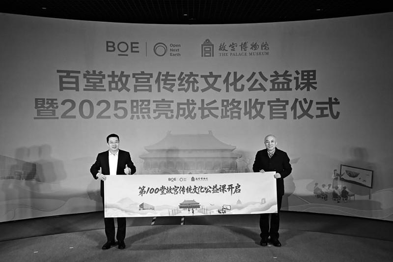 近日,BOE(京東方)“百堂故宮傳統(tǒng)文化公益課”暨2025照亮成長路收官儀式在故宮博物院舉行。故宮博物院是BOE(京東方)“照亮成長路”公益項目的重要合作伙伴,雙方自2023年攜手啟動“百堂故宮傳統(tǒng)文化公益課”項目,依托BOE(京東方)智慧教育解決方案與數(shù)字技術(shù)弘揚中華優(yōu)秀傳統(tǒng)文化,不僅為偏遠地區(qū)教育高質(zhì)量發(fā)展注入科技活力,還憑借數(shù)字化形式推動文化傳承,展現(xiàn)傳統(tǒng)文化歷久彌新的獨特魅力。 該項目于云南省保山市啟動,歷時兩年已走進包括陜西西鄉(xiāng)、山西婁煩、四川理塘、青海玉樹在內(nèi)的多地近40所學(xué)校,線上線下累計惠及學(xué)生超過兩萬名,持續(xù)推動“科技+教育+文化”的可持續(xù)發(fā)展,切實幫助偏遠地區(qū)學(xué)生獲得近距離感受中華傳統(tǒng)文化魅力的教育機會。 活動現(xiàn)場,故宮博物院院長王旭東,故宮博物院副院長朱鴻文,中國鄉(xiāng)村發(fā)展基金會副秘書長丁亞冬,京東方科技集團CEO馮強,京東方科技集團副總裁、首席人事官李洋,京東方科技集團副總裁、首席品牌官司達等嘉賓,以及曾參與項目課程的五所學(xué)校20名師生代表齊聚一堂,共同見證這一重要時刻,并展望科技賦能文化傳承與青少年教育的未來新篇。 朱鴻文在致辭中表示,“故宮博物院和京東方科技集團都是深耕各自領(lǐng)域的實踐者,我們擁有推動文化教育發(fā)展的多元化優(yōu)勢——企業(yè)有技術(shù)賦能的能力,文化單位有內(nèi)容資源的厚度。我們通過‘文化+科技’的雙重賦能,帶領(lǐng)邊遠地區(qū)的孩子們在智慧課堂上觸摸歷史脈搏,跨越時間和空間的限制,近距離感受故宮承載的中華優(yōu)秀傳統(tǒng)文化的獨特魅力?!?br> 李洋在致辭中表示,“京東方‘照亮成長路’項目已走過十年,它已超越單一公益項目,成長為一個開放、多元、可持續(xù)的公益平臺。百堂課的收官不是終點,而是一個嶄新的起點。我們期待更多優(yōu)秀的伙伴加入‘照亮成長路’項目,共同以科技與文化之光,讓優(yōu)質(zhì)的教育資源突破時空限制,照亮更多孩子的成長之路。” 丁亞冬在致辭中表示,“京東方作為全球創(chuàng)新型物聯(lián)網(wǎng)公司和全球顯示產(chǎn)品龍頭企業(yè),積極履行社會責(zé)任,不僅提供公益資金捐贈,還以其全球領(lǐng)先的顯示技術(shù)和物聯(lián)網(wǎng)解決方案,為‘百堂故宮傳統(tǒng)文化公益課’提供了高質(zhì)量的傳輸與呈現(xiàn)保障。” 儀式現(xiàn)場,曾參與項目課程的五所學(xué)校師生代表帶著親手制作的紀念品依次登臺發(fā)言,表達對BOE(京東方)及故宮博物院的謝意。在儀式結(jié)尾,王旭東與馮強共同上臺展開卷軸,標(biāo)志著第一百堂故宮傳統(tǒng)文化公益課開啟,也為故宮博物院建院100周年這一重要歷史時刻增添特殊的紀念意義。儀式結(jié)束后,故宮工作人員帶領(lǐng)學(xué)生走進故宮,在充滿歷史底蘊的宮殿中講述建筑與文物背后的文化故事,為孩子們帶來了意義非凡的第一百堂故宮文化課,沉浸式加深偏遠地區(qū)孩童對中華優(yōu)秀傳統(tǒng)文化的認識。 除了實地游覽故宮,BOE(京東方)還安排了豐富的研學(xué)活動,帶領(lǐng)師生們在王府井?dāng)?shù)字藝術(shù)館與京東方歷史展覽館開展研學(xué)。在數(shù)字藝術(shù)館,BOE(京東方)通過高清顯示與動態(tài)影像技術(shù)打造出沉浸式文化場景,讓文物“活”起來;在京東方歷史展覽館,孩子們則透過屏幕技術(shù)的演進,直觀感受到科技發(fā)展的創(chuàng)新力量。在領(lǐng)略科技賦能藝術(shù)魅力之余,BOE(京東方)還帶領(lǐng)師生們走進北京的地標(biāo)性景區(qū),親身感受天安門廣場的莊嚴、頤和園的秀美、景山公園的遼闊。這場研學(xué)之旅,讓歷史與文明不再遙遠,讓文化變得可觸可感,助力孩子們收獲更為鮮活而深刻的文化體驗。 依托“照亮成長路”項目,BOE(京東方)搭建起跨越空間和距離的數(shù)字化平臺,開展10余年來已在10個省市建成156間智慧教室,累計受益師生超7萬人,不僅讓偏遠地區(qū)的孩子們沉浸式感受到文化和科技的力量,也通過豐富的研學(xué)活動,讓孩子們能夠跨越千里之遙來到祖國的心臟研學(xué),在心中埋下科技賦能文化的種子。這不僅標(biāo)志著“照亮成長路”實現(xiàn)了從“硬件支持”到“內(nèi)容賦能”的深刻跨越,更是BOE(京東方)公益維度的重要升級。而“百堂故宮傳統(tǒng)文化公益課”的落地,也象征著BOE(京東方)“照亮成長路”項目全新的開始。 BOE(京東方)持續(xù)以技術(shù)突破賦能文化業(yè)態(tài)革新,讓責(zé)任之光照進文化與科技的融合之路。近年來,BOE(京東方)與包括故宮博物院在內(nèi)的多家文化機構(gòu)展開合作,今年更是助力故宮博物院百年大展,聯(lián)合打造“遇見你的故宮色”裸眼3D數(shù)字展項、乾隆花園數(shù)字展廳等,讓科技成為傳遞美、連接文化的橋梁。 面向未來,BOE(京東方)將繼續(xù)秉持“OpenNextEarth”可持續(xù)發(fā)展理念,發(fā)揮自身在屏幕顯示、物聯(lián)網(wǎng)等領(lǐng)域的領(lǐng)先科技實力,攜手故宮博物院在內(nèi)的眾多合作伙伴推動中華優(yōu)秀傳統(tǒng)文化的創(chuàng)新性傳承,以科技和文化雙重賦能教育,讓融合科技溫度、文化深度與公益廣度的教育