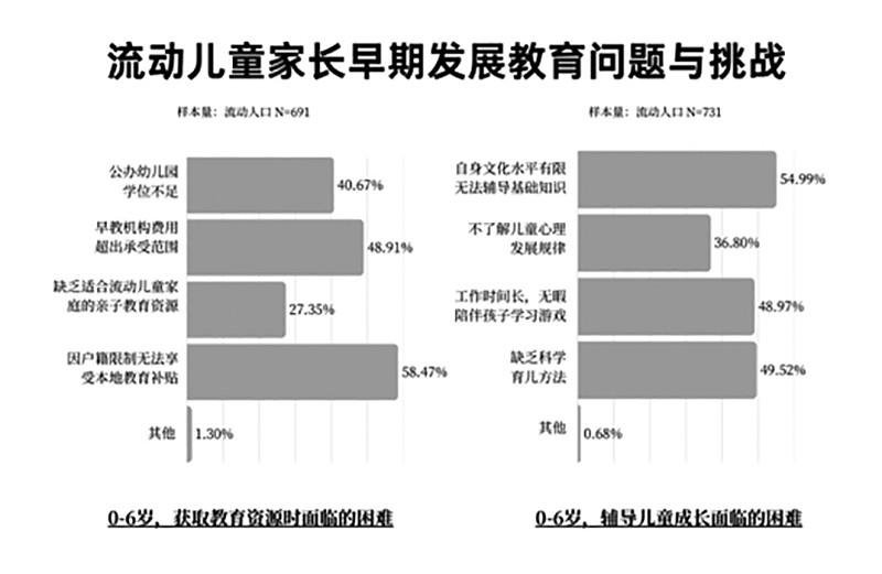 報告認(rèn)為,困境流動兒童家庭的境遇,并非個體悲劇或單一因素所致,而是宏觀制度結(jié)構(gòu)、中觀支持網(wǎng)絡(luò)與微觀生命事件在時間維度上動態(tài)交織、代際傳遞的系統(tǒng)性結(jié)果。 ■ 本報記者 王勇 流動兒童的自我身份認(rèn)同相對混亂和模糊。29.83%的流動兒童認(rèn)為自己“既是城市人又是農(nóng)村人”。24.33%認(rèn)為是“農(nóng)村人”,24.07%認(rèn)為是“流動人口”,13.57%認(rèn)為是“城市人”,8.19%表示“不清楚”。與此同時,77.06%的流動兒童家長、63.41%的流動兒童希望長期在城市發(fā)展。 上述數(shù)據(jù)來自《看見流動的童年——流動兒童及其家庭需求研究報告(2025)》(以下簡稱報告)。該報告由北京市協(xié)作者社會工作發(fā)展中心(以下簡稱“協(xié)作者”)在1月25日舉行的流動兒童及其家庭關(guān)愛服務(wù)創(chuàng)新沙龍上正式發(fā)布。 基于2025年對京津冀、長三角、珠三角及山東半島四個代表性城市776個流動兒童家庭與787個流動兒童的問卷調(diào)查,以及54個困境家庭的深度訪談,報告采用“兒童-家庭”雙重視角、“困境-普通”家庭對比視角,全面呈現(xiàn)了該群體在生計發(fā)展、身心健康、教育公平及社會支持四大核心維度的生存現(xiàn)狀與動態(tài)需求。“我們希望這份報告及相關(guān)持續(xù)性的研究、服務(wù)行動,能為各方提供一個基于實證的、動態(tài)的觀察窗口,共同推動流動兒童關(guān)愛服務(wù)體系朝著更加精準(zhǔn)、系統(tǒng)、可持續(xù)的方向發(fā)展?!眳f(xié)作者主任李濤強(qiáng)調(diào)。 普遍面臨系統(tǒng)性壓力 報告顯示,流動兒童家庭普遍面臨生存與發(fā)展的系統(tǒng)性壓力,而困境家庭在各維度都承受著更為嚴(yán)峻的挑戰(zhàn)。 生計發(fā)展方面,流動兒童家庭面臨就業(yè)質(zhì)量低、收入不穩(wěn)定、經(jīng)濟(jì)緩沖能力弱及社會保障不足等多重挑戰(zhàn)。 流動兒童家長從事的職業(yè)以制造業(yè)普工、商販、打零工、保潔家政和服務(wù)員等勞動強(qiáng)度大、技術(shù)門檻低的崗位為主。17.53%的流動兒童家長屬于新業(yè)態(tài)勞動者,其工作是通過網(wǎng)絡(luò)平臺接單,如騎手、快遞員、賣菜平臺分揀員等。 流動兒童家長對工作滿意度一般。在滿意度的成因上,“可以兼顧照顧家庭”是最重要的因素,其次是“有社會保險”和“工作時間自由”。 值得一提的是,無論是男性流動兒童家長還是女性流動兒童家長,均將“可以兼顧家庭”作為工作滿意度的最主要的原因之一。這意味著對于流動兒童家長而言,家庭對其自我價值與成就感均是非常重要的考慮因素。 32.35%的家庭面臨收支失衡,支出超過收入,需通過調(diào)整開支或借助外部支持/借貸彌補(bǔ)缺口。49.23%的家庭在無收入時生活難以維持超過2個月,其中困境家庭在此項上的脆弱性更高。 與此同時,近九成家庭在現(xiàn)居城市有過搬家經(jīng)歷,超過半數(shù)曾搬家三次以上。43.03%的流動兒童因搬家“失去原來的好朋友,感到孤單”;27.64%則面臨“在新環(huán)境中交朋友困難”。 身心健康方面,流動兒童在成長發(fā)育的多個環(huán)節(jié)面臨系統(tǒng)性支持不足,而困境兒童面臨的挑戰(zhàn)更為嚴(yán)峻。流動兒童在營養(yǎng)攝入、飲食規(guī)律、健康問題及心理健康等方面存在不同程度的不足與風(fēng)險。 流動兒童家長的健康狀況也不容忽視。39.69%的家長從未做過體檢,未接受體檢的主要原因包括經(jīng)濟(jì)壓力大、認(rèn)為身體無大礙無需檢查以及缺乏時間。 60.82%的流動兒童家長經(jīng)確診患有疾病,“三高”(高血壓、高血脂、高膽固醇)、消化道疾病及慢性肌肉骨骼疾病是主要患病類型。這些疾病直接與多數(shù)流動兒童家長從事的高強(qiáng)度體力勞動、不規(guī)律的作息時間、高鹽高脂飲食以及長期久坐或重復(fù)性勞作的工作性質(zhì)密切相關(guān)。 當(dāng)身體不適時,63.89%的流動兒童家長首選自行處理,包括“根據(jù)過往經(jīng)驗到藥店買藥”“先硬扛著”或“自己先上網(wǎng)查詢”。選擇就醫(yī)機(jī)構(gòu)時,“醫(yī)療費(fèi)用更低”“距離更近”和“可以支持報銷”是三個最主要考量因素。 子女教育方面,流動兒童家庭面臨政策壁壘、信息不暢、家庭支持能力弱等挑戰(zhàn)。 在0-6歲早期發(fā)展階段,近九成家庭在獲取教育資源時面臨困難。主要障礙包括戶籍限制和經(jīng)濟(jì)壓力。在家庭養(yǎng)育方面,超過九成的家長面臨挑戰(zhàn),其中超過半數(shù)表示因自身文化水平有限,缺乏相關(guān)養(yǎng)育知識。 約半數(shù)流動兒童認(rèn)為父母“不太可以”或“完全不可以”輔導(dǎo)功課;而家長自評中,明確表示無法輔導(dǎo)的比例更高。 在學(xué)齡期兒童入學(xué)與升學(xué)方面,超過九成的流動兒童家長面臨挑戰(zhàn)。主要困境依然與戶籍相關(guān):70.54%的家長在辦理入學(xué)時需要滿足積分落戶或特定證件材料等附加條件;40.08%的家長因戶籍限制,子女在初高中升學(xué)階段只能選擇返回老家。 與通常想象不同,流動兒童家庭對子女教育的首要期待并非學(xué)業(yè)成績。排名前三的期待分別是:獨立自信完成任務(wù)/目標(biāo)、與他人交往的能力、有自己的興趣愛好,學(xué)習(xí)成績僅排在第四