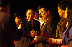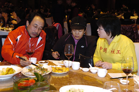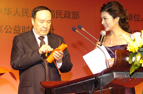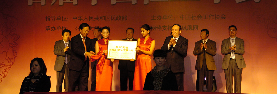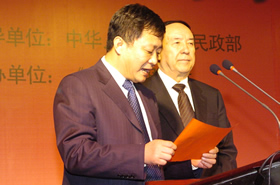 中國(guó)社工協(xié)會(huì)常務(wù)副會(huì)長(zhǎng)楊建昌致祝酒辭 中國(guó)社工協(xié)會(huì)副會(huì)長(zhǎng)兼秘書(shū)長(zhǎng)趙蓬奇宣讀榮譽(yù)會(huì)員名單 司馬義·艾買(mǎi)提與劉京共同為北京啟動(dòng)世紀(jì)愛(ài)晚(北京)