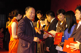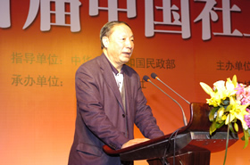 中國(guó)社工協(xié)會(huì)會(huì)長(zhǎng)徐瑞新為榮譽(yù)會(huì)員頒發(fā)證書(shū) 民政部副部長(zhǎng)孫紹騁宣讀獲獎(jiǎng)名單 國(guó)務(wù)院僑辦副主任任啟亮出席年會(huì)