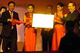 司馬義·艾買(mǎi)提與劉京共同為北京啟動(dòng)世紀(jì)愛(ài)晚(北京)置業(yè)有限公司揭牌